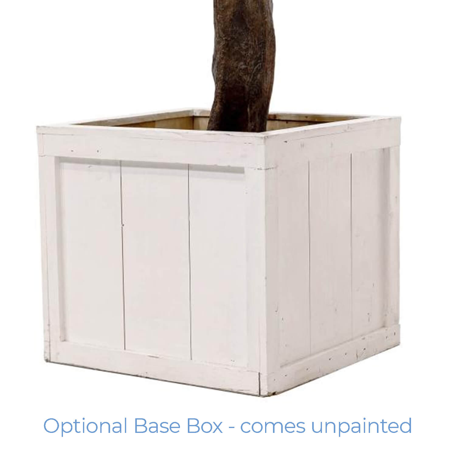 - Add a wooden Base Box to give a 6" lift and add stability and decorative cover to your tree base! **Tree boxes come unpainted. Paint to desired color.**