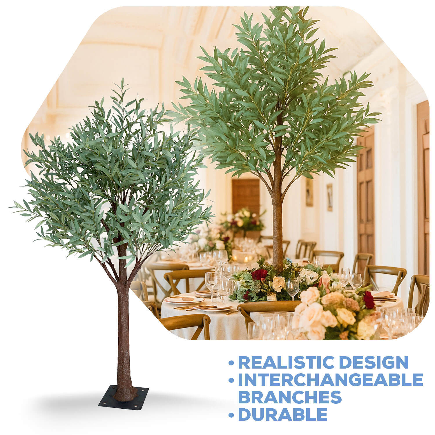 Transform your decor with the 6ft Olive Leaf Tree Floor or Grand Centerpiece 10 Interchangeable Branches Green Olive Tree Leaves. This lifelike olive leaf tree features 10 interchangeable branches, perfect for creating a stunning centerpiece at weddings, receptions, and upscale events. Its versatile design allows for customization, enhancing the overall ambiance. Another fantastic product from Event Decor Direct to elevate your special occasions!