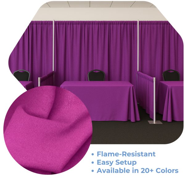 For Booth or Back wall designs we recommend using approx. 3 to 4 panels per 10ft section depending on how gathered you want your drape to look.